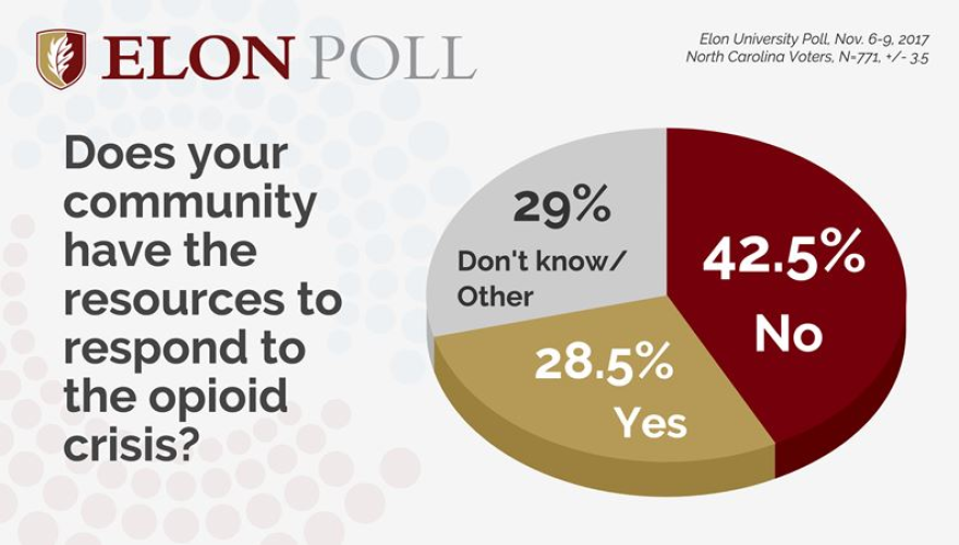 One in three North Carolinians say they've been personally affected by the opioid addiction crisis, according to a new poll from Elon University.