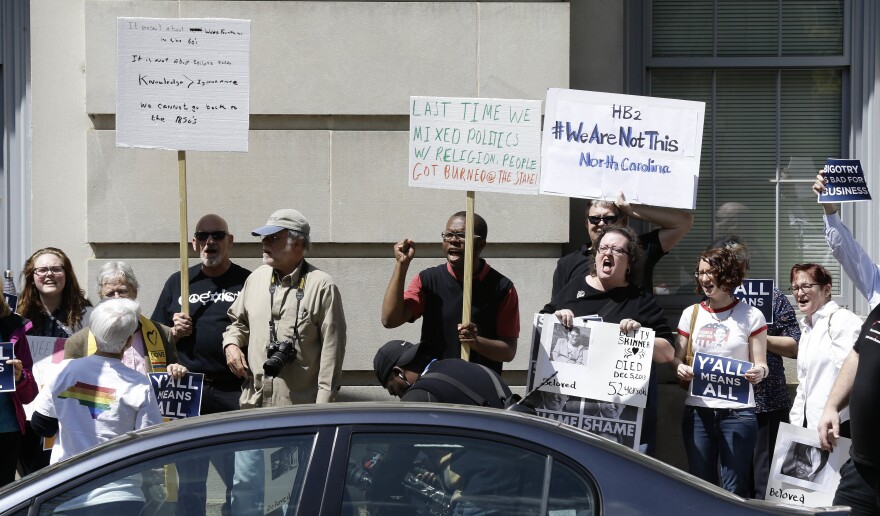 Their May 2016 arrests by General Assembly police stem from protests over North Carolina's "bathroom bill," now partially repealed.