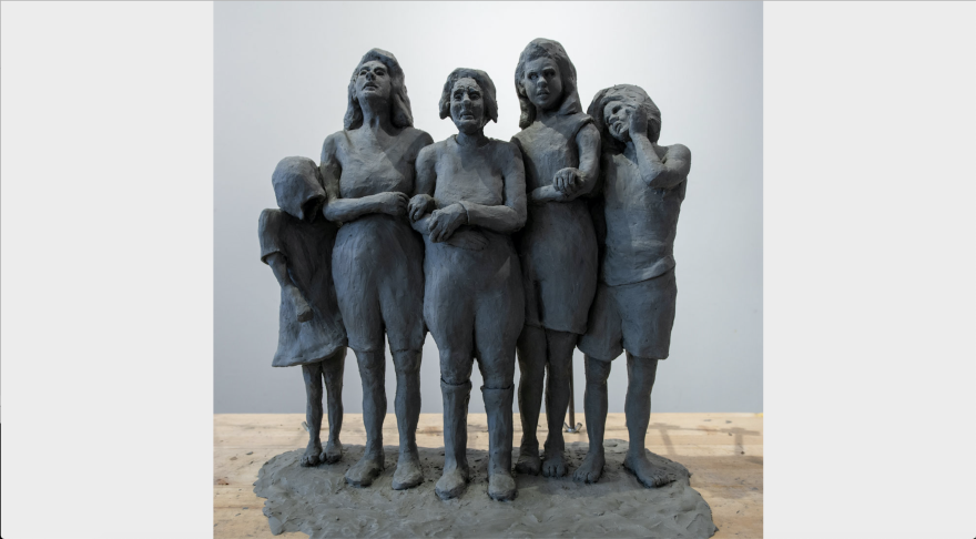The sculpture is called “She Wouldn't Take Off Her Boots,” and was modeled after a photo of five women in Latvia just before they were executed. Artist Victoria Milstein was inspired to create the monument by a trip to Poland where she visited the Auschwitz concentration camp. Specifically, she wanted to document the journey of the women and children of the Holocaust.