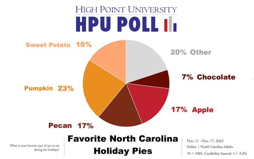 High Point University has conducted a national and statewide poll of holiday pie preferences, and pumpkin is the clear winner.