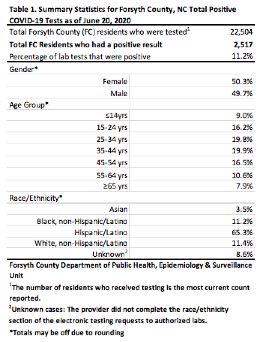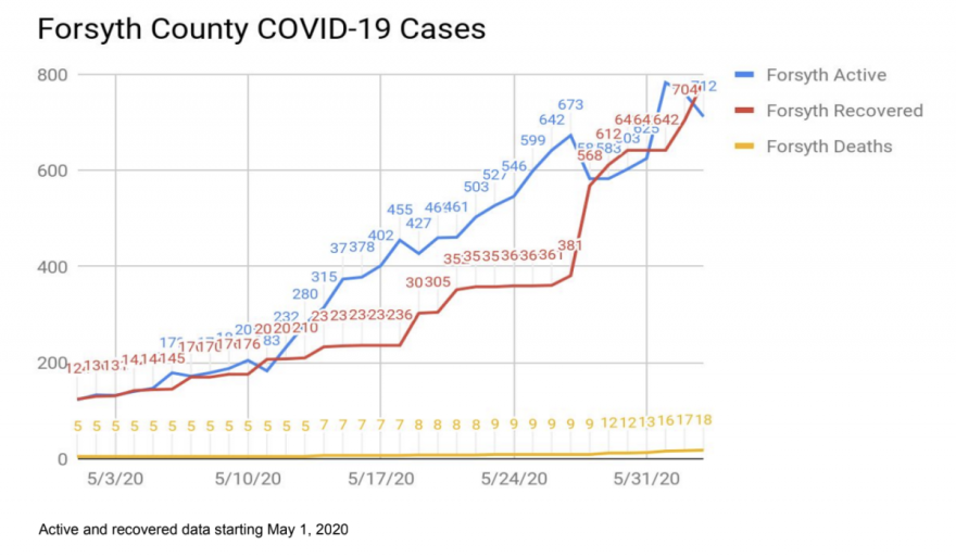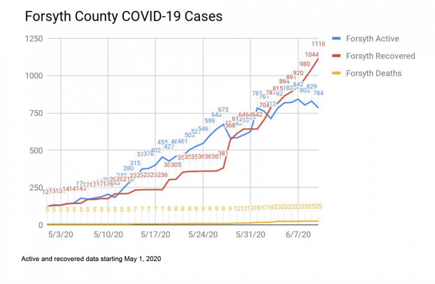 Se han reportado 24 nuevos casos de COVID-19 y una muerte en el Condado de Forsyth desde ayer. La persona que falleció era un septuagenario con condiciones médicas pre existentes. En total, han habido 1,465 casos en el condado. De estos, 704 se han recuperado.